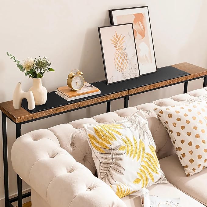 - Premium PU Leather - Stylish & Easy to Clean: Crafted from soft, durable, and stylish PU leather, this black console table mat is easy to clean—just wipe with a damp cloth. Its sleek design complements sofa tables in the living room, console tables behind the couch, and other furniture like sofas and beds, enhancing your sofa table decor, console table decor, and entryway table decor.