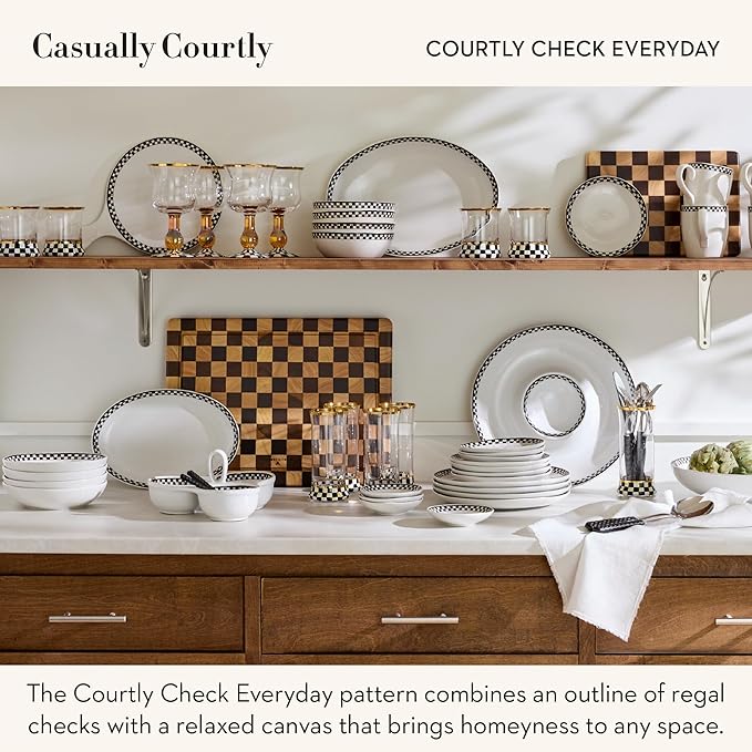 - ENTERTAINING ESSENTIALS: Elegant and versatile, these stoneware bowls always serve style. Each bowl in our Courtly Check Everyday mixing bowl set is made with a white stoneware bowl body and decorated with a rim of our signature black-and-white pattern.
