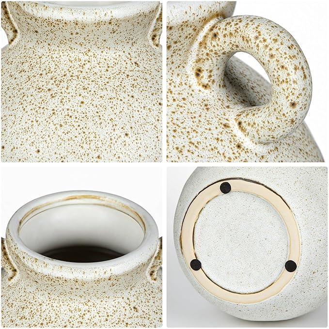- Vintage Ceramic Vase: The Vintage Ceramic Vase with 2 Handles stands at 7 inches tall and 6.2 inches wide, embodying a classic elegance reminiscent of a bygone era. Its terracotta speckled design infuses any space with a natural, artistic flair, serving as an eye-catching centerpiece or a delightful complement to your home's decor.