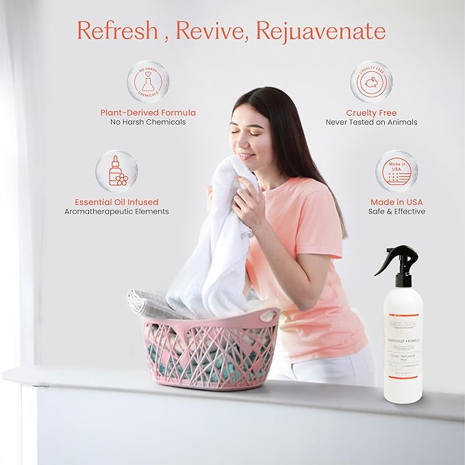 - Generous 15.5 oz Size: Our large 15.5 oz fine mist bottle evenly covers fabrics and rooms. Perfect for daily linen care, pre-ironing touchups, and post-laundry finishing, providing long-lasting freshness with more sprays per bottle.