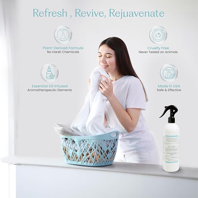 - Generous 15.5 oz Size: Our large 15.5 oz fine mist bottle evenly covers fabrics and rooms. Perfect for daily linen care, pre-ironing touchups, and post-laundry finishing, providing long-lasting freshness with more sprays per bottle.