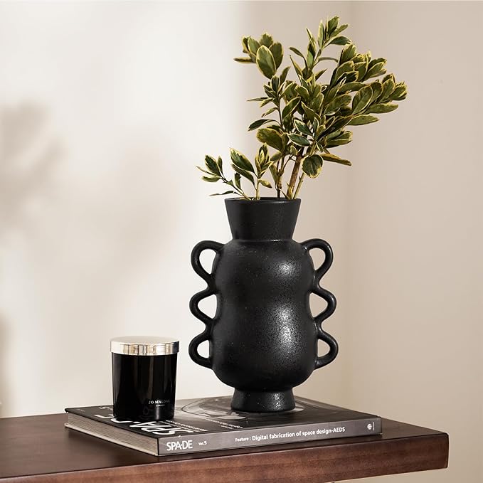 - 【Elegant & Unique】 This black ceramic vase features unique wave-shaped handles with 6 ears, creating a striking modern farmhouse aesthetic.