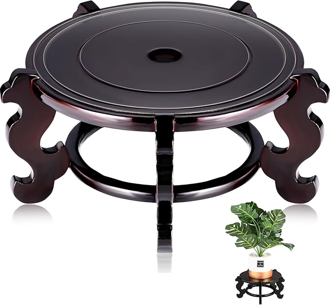 Yoiemivy 10 Inch Wooden Plant Stand Vase Stand Indoor Chinese Fishbowl Planter Stands for Display Oriental Style Indoor Plant Pot Pedestal Stand (10 Inch)