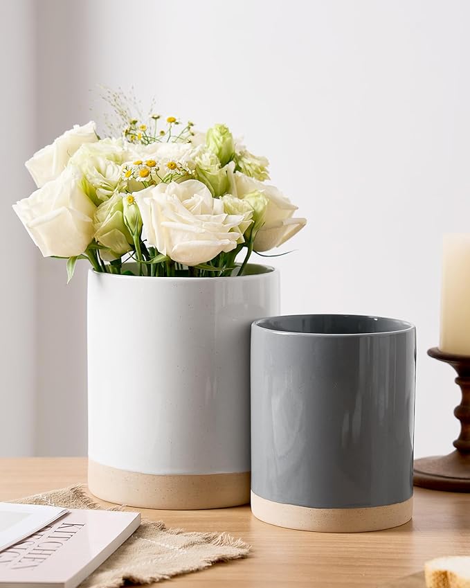 famiware Milkyway Kitchen Utensil Holder for Countertop, Ceramic Cooking Utensil Crocks for Kitchen Counter, Utensil Organizer for Spatula & Spoon, Set of 2, White and Dark Gray