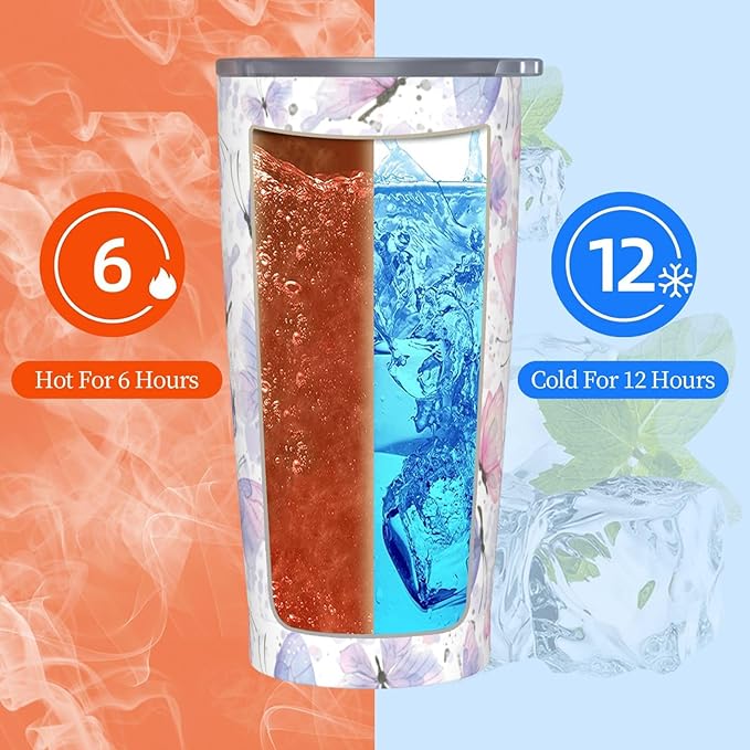 - Creative Design: Unique butterfly print gifts design, 20 oz steel insulated tumbler has rich and fine butterfly pattern provide more ideas when you choose gifts.Best gifts for women,girl, sister, mom,teachers, best friend, girlfriend,wife and animals lovers