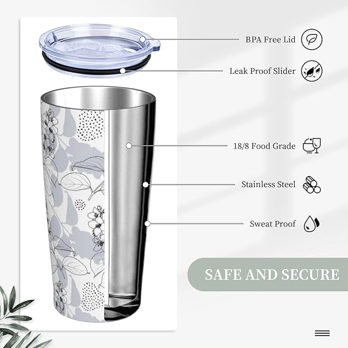- Tumbler with Lid and Straw:Gray flower design coffee cup comes with a spill-proof lid, reusable straw and straw brush, which is designed with great care and practicality.This lid complete with a slider and silicone seal.It provides convenience and supports two drinking methods with a straw or sipping directly