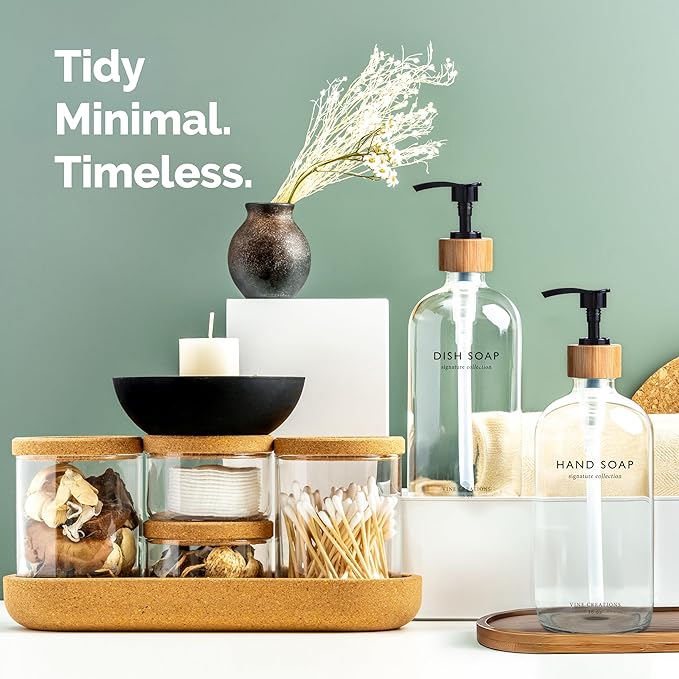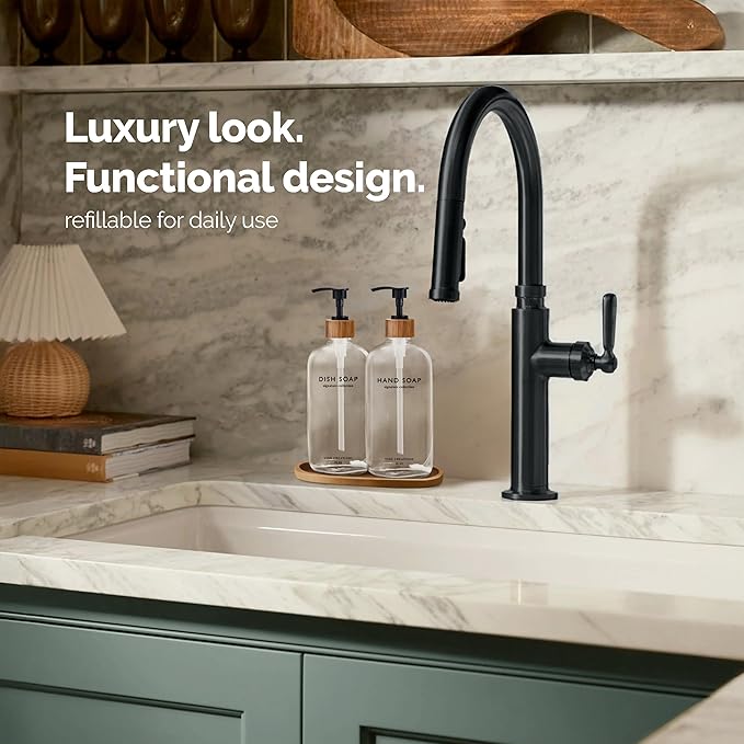 - BUILT TO PERFORM – Each dispenser is topped with a natural bamboo pump that’s as functional as it is elegant. Smooth to use, moisture-resistant, and thoughtfully designed to complement any modern kitchen or bathroom with a warm, organic touch.