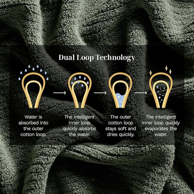 - PATENTED DUAL-LOOP TECHNOLOGY: Comes with intelligent microfiber inner loop that absorbs then evaporates water, and a long-staple cotton outer loop that stays soft and dry.