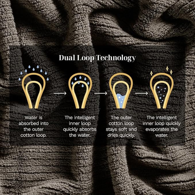 - PATENTED DUAL-LOOP TECHNOLOGY: Comes with intelligent microfiber inner loop that absorbs then evaporates water, and a long-staple cotton outer loop that stays soft and dry.