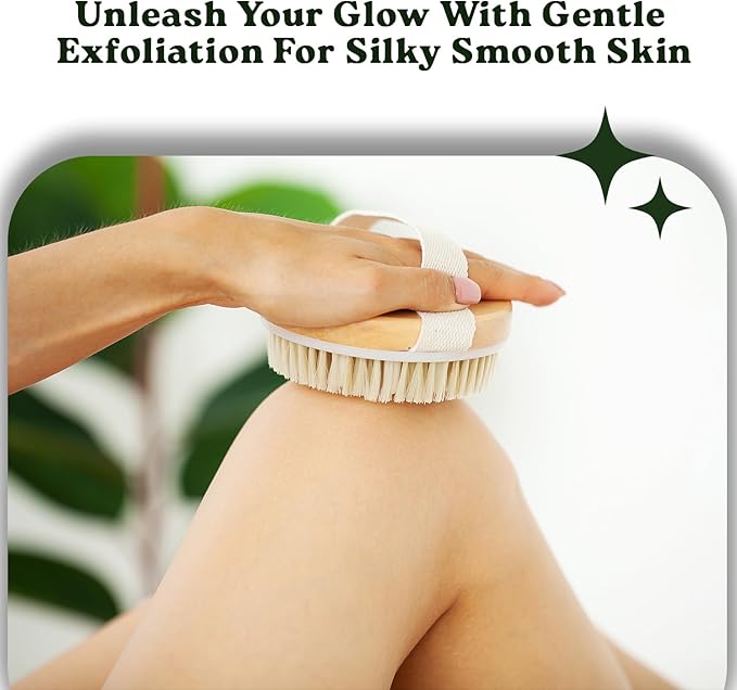 - DURABLE AND SKIN-FRIENDLY DESIGN: Crafted with high-quality boar bristles, this bristle brush delivers reliable exfoliation without shedding or irritating your skin. The bristles are soft but sturdy enough to stimulate circulation, cleanse pores, and improve skin texture. Enjoy a natural, spa-like treatment with dry exfoliating brush that’s effective and kind to your skin.