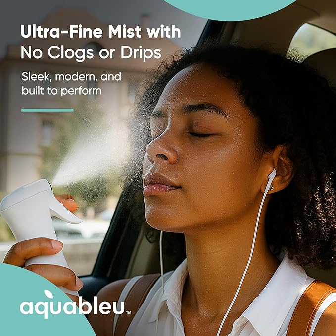 Aquableu Spray Bottle for Hair – Continuous Mist Spray Bottle for Hair Care, Styling, Cleaning, Plants, Pets & Essential Oils (White, 10oz)