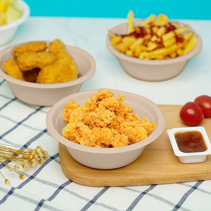 - Eco-Friendly Material: Dive into greener dining with our recycled bagasse bowls. No trees were cut—just leftover sugarcane turned into durable paper bowls. Embrace your commitment to the planet with every use. Perfect for eco-conscious individuals