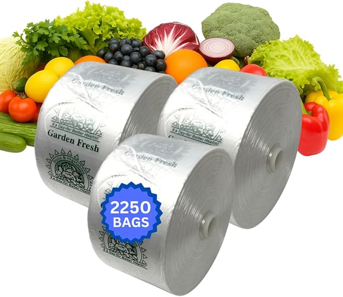 Clear Produce Bags Roll - 2250 Bags - 15"x20" – (3 Rolls, 8 Microns) – for Grocery, Small Business, Reusable Produce Use, Food & Storage Needs, Garden Fresh, Narrow Profile, Kitchen Use