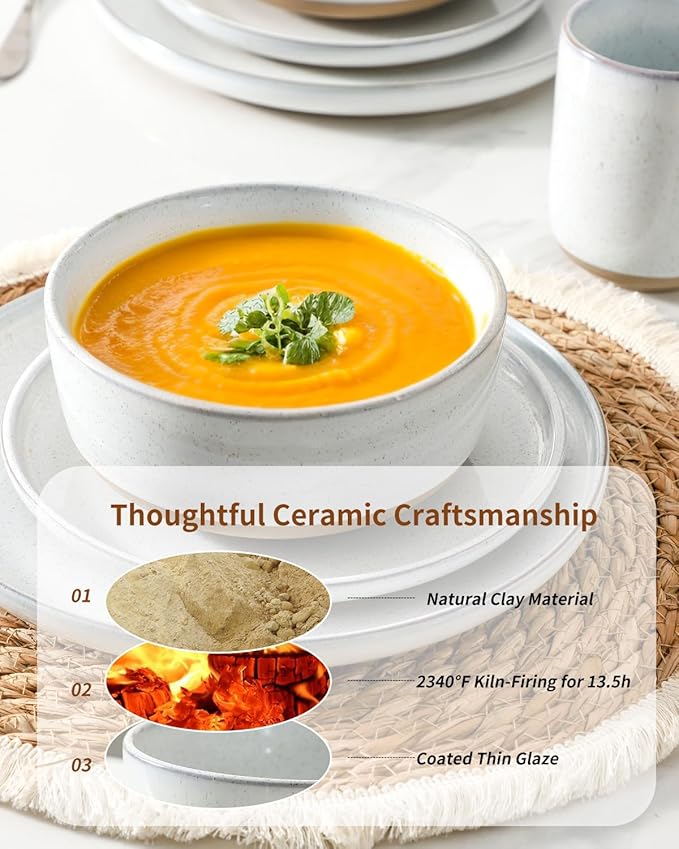 - Sturdy and Long-Lasting: Hasense dining set for 6 is featured with fun speckles and engobe bottom which can add a modern touch to your life. After being fired at a high temperature of 2340℉for 13.5 hours, it ensures strength and durability for long-term use