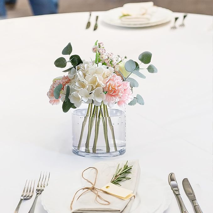 Clear Acrylic Vase for Centerpieces 3.9x3.9 Inch Cylinder Wide Mouth Vase for Flowers, Home Decorative, Office, Wedding Party
