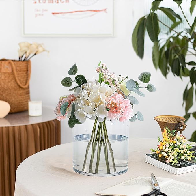 Clear Acrylic Vase for Centerpieces 5.9x5.9 Inch Cylinder Wide Mouth Vase for Flowers, Home Decorative, Office, Wedding Party