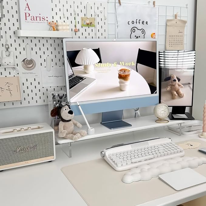 - Sleek Bamboo + Acrylic Design: The mix of natural bamboo and clear acrylic creates a clean, floating look that adds elegance and visual lightness to any workspace.