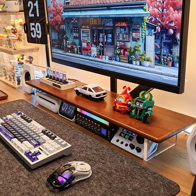 Bamboo Monitor Stand Riser with Acrylic Legs for Desk, 31.5 Inches Desktop Shelf Supports for PC Computer Monitor, Laptops, Printer, Speakers (Brown)