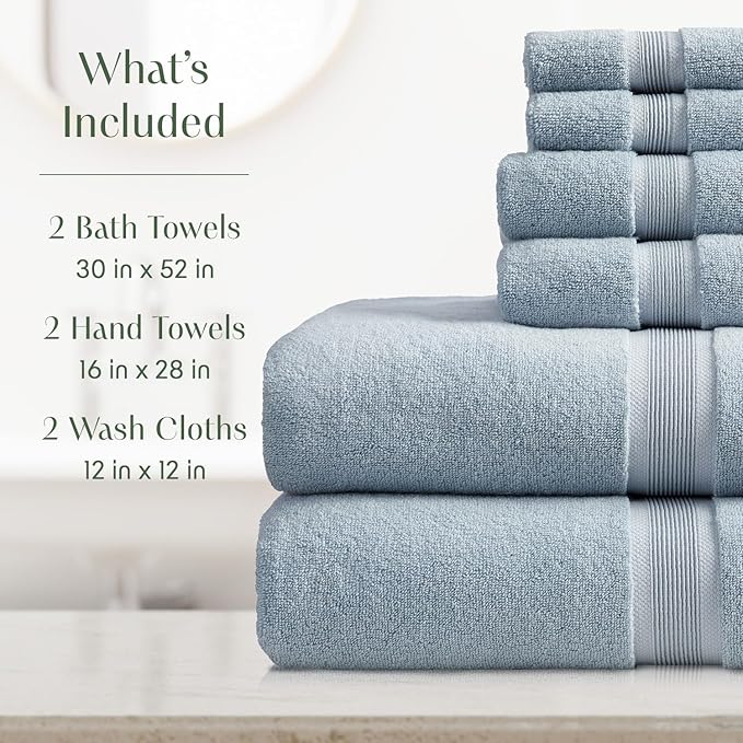 Springtree Home Luxury Bamboo Rayon Bath Towel Set 6 Piece Set | 35% Bamboo Rayon - 65% Cotton | Absorbent Quick-Dry Towels for Bathroom | Oeko-TEX Standard 100 Cotton | Blue Fog