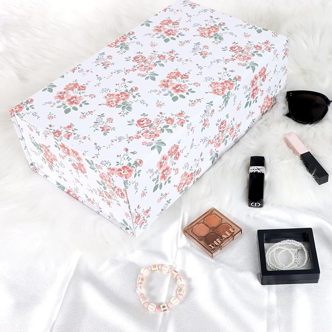 Rose Floral Gift Box with Magnetic Lids 13.8x8.3x4.4 in, Large Bridesmaid Proposal Boxes, Rectangle Wedding Decorative Storage Box 5 Pack
