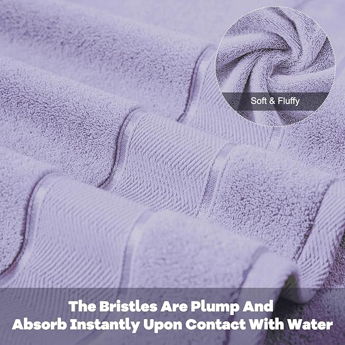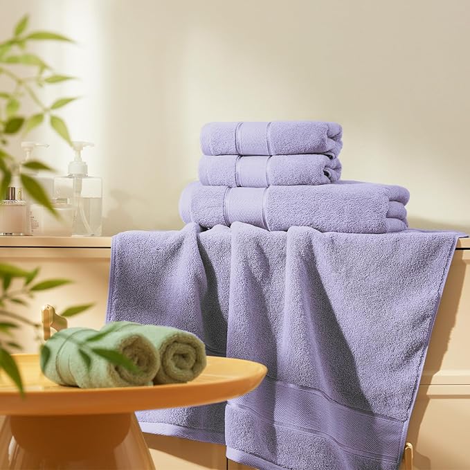 Marvione Bath Towels Set 6 Piece, 100% Turkish Cotton Highly Absorbent and Soft Towels for Bathroom 2 Bath Towels 2 Hand Towels 2 Washcloths, Lavender