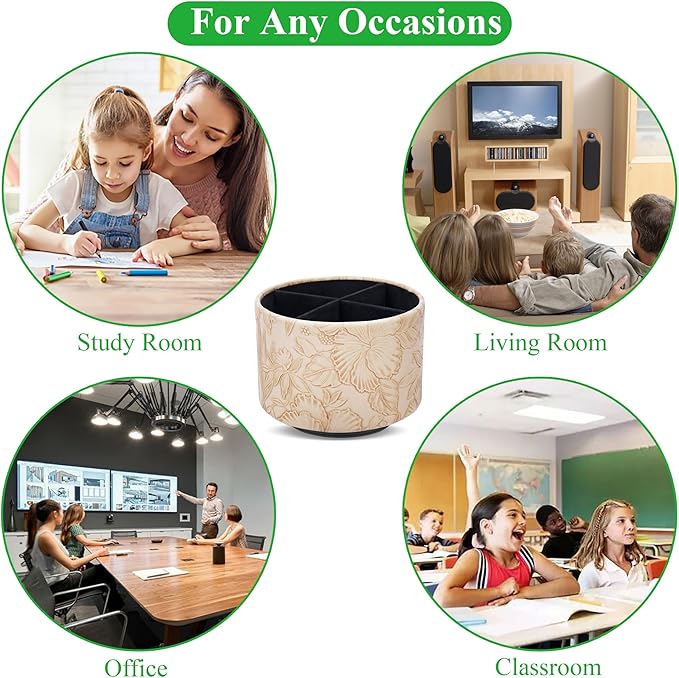 - ✎360° Revolving Design: You can freely rotate the pen holder steadily left and right,unique spinning base design allows easy access to items from any directions.The non-slip pads on the bottom keep it stay in place when rotating.