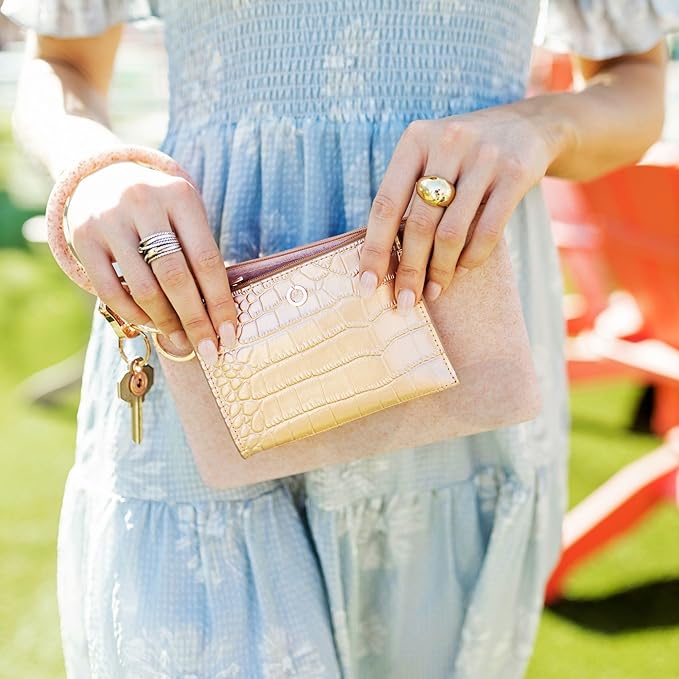 Oventure Large Silicone Pouch – Rose Gold Confetti | Waterproof Zipper Bag & Holiday Gift for Women, Makeup & Travel