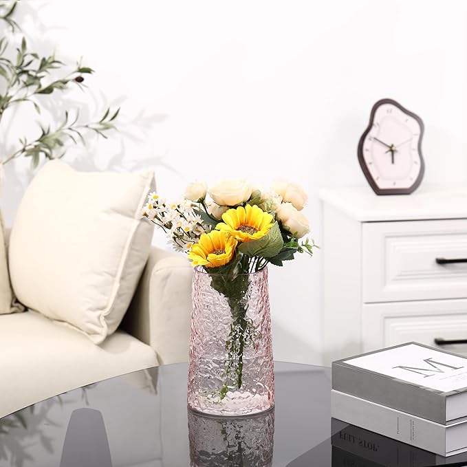 Pink Glass Vase, Flower Vases for Bouquet, Modern Glass Vase for Flowers, Large Vases for Living Room, Bedroom, Kitchen, Office, Wedding, Dining Table, 8 Inches
