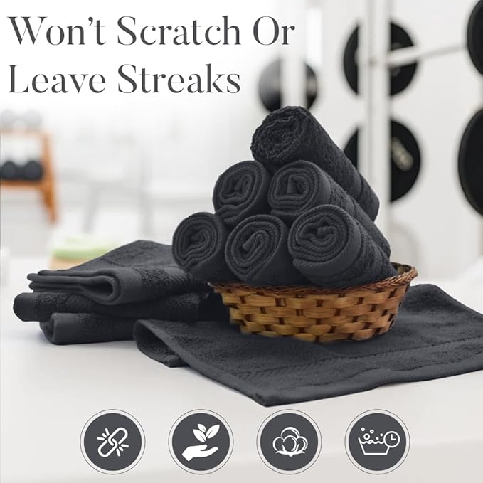 DAN RIVER 12-Pack Premium 100% Cotton Dark Gray Face Towels – Reusable Face Towel Set, Soft & Absorbent Small Wash Cloths for Bathroom & Body – Hand and Face Towels, 550 GSM (12x12 in)
