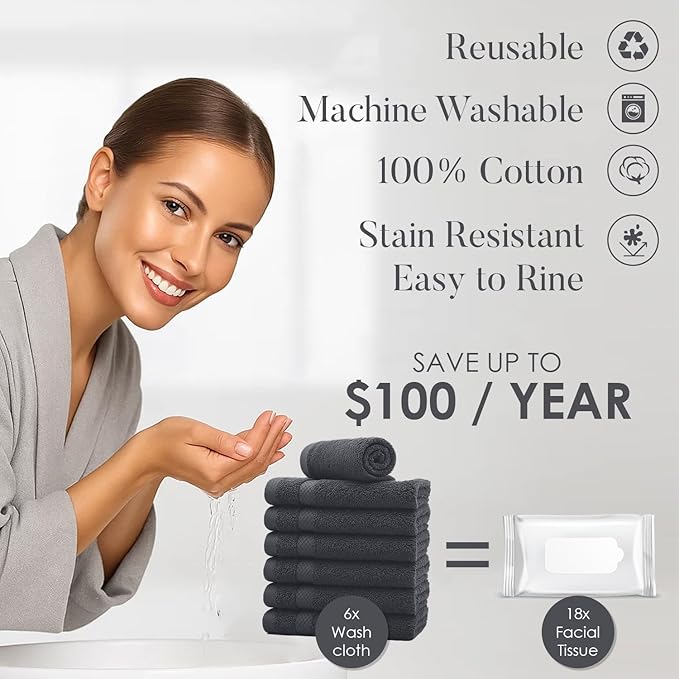 - These cotton washcloths for face essentials are quick drying, light weight, and absorbent—great for travel or gym without that damp towel smell