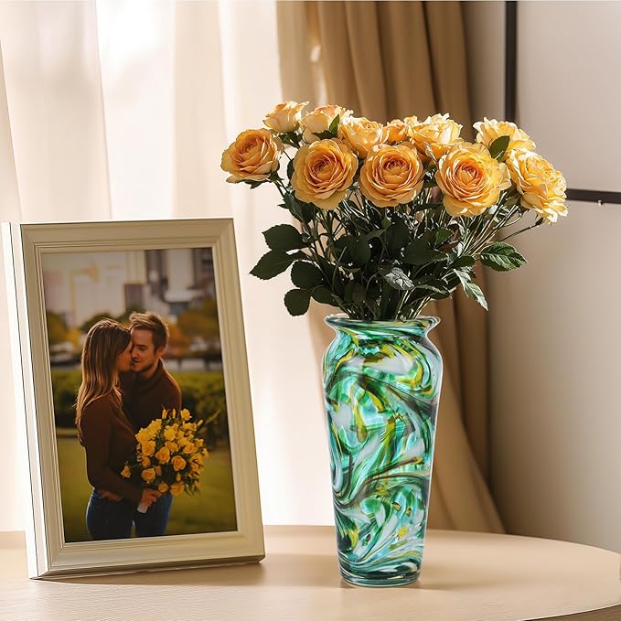 - [Unique Gift] As an exquisite gift, this hand blown glass vase is ideal for anniversaries, newlyweds, housewarming, holidays and other occasions. Its unique design and handmade craftsmanship conveys a unique sentiment. Giving this decorative vase will not only bring the recipient a warm and romantic touch, but also add an artistic touch to their home environment.