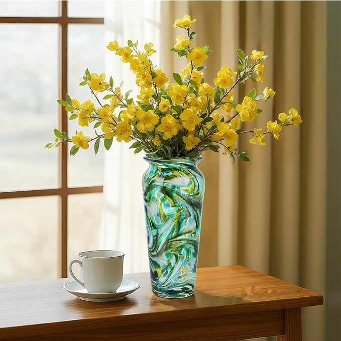 - [Hand Blown Glass Vase] Each hand blown glass vase is hand blown by artisans and carefully polished, each vase is a one-of-a-kind work of art. The wide mouth vase design can hold a variety of bouquets such as roses, peonies, etc. It is suitable for bouquet vase displays and perfectly complements the beauty of the flowers.