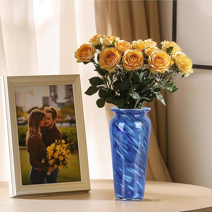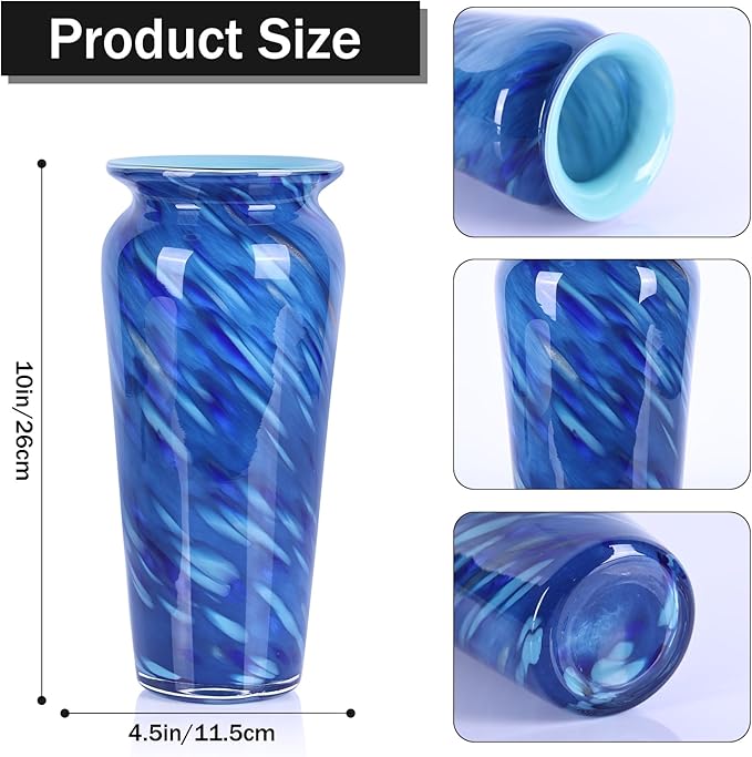 - [Unique Gift] As an exquisite gift, this hand blown glass vase is ideal for anniversaries, newlyweds, housewarming, holidays and other occasions. Its unique design and handmade craftsmanship conveys a unique sentiment. Giving this decorative vase will not only bring the recipient a warm and romantic touch, but also add an artistic touch to their home environment.