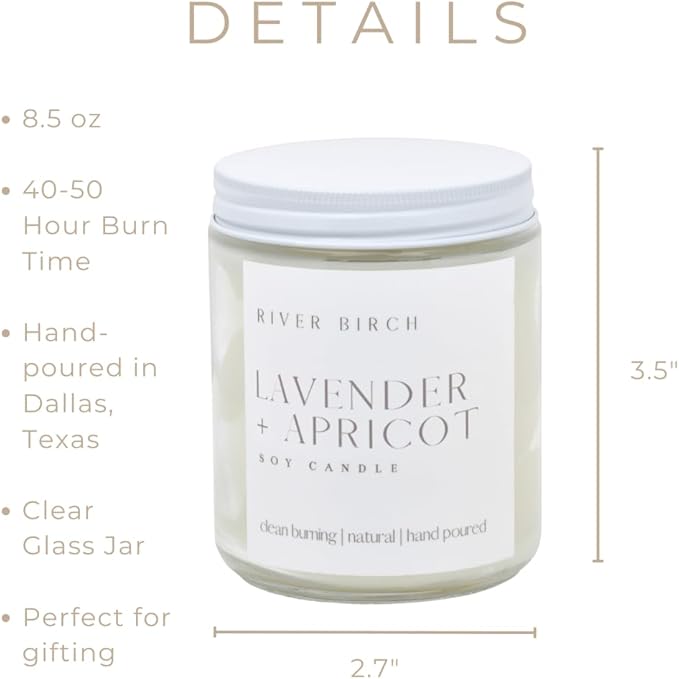 River Birch Candles Lavender + Apricot Scented Candle | Premium, All-Natural, Non-Toxic, Soy Wax | 8.5oz 40 Hr Burn Time | Cozy Relaxing Gifts for Home