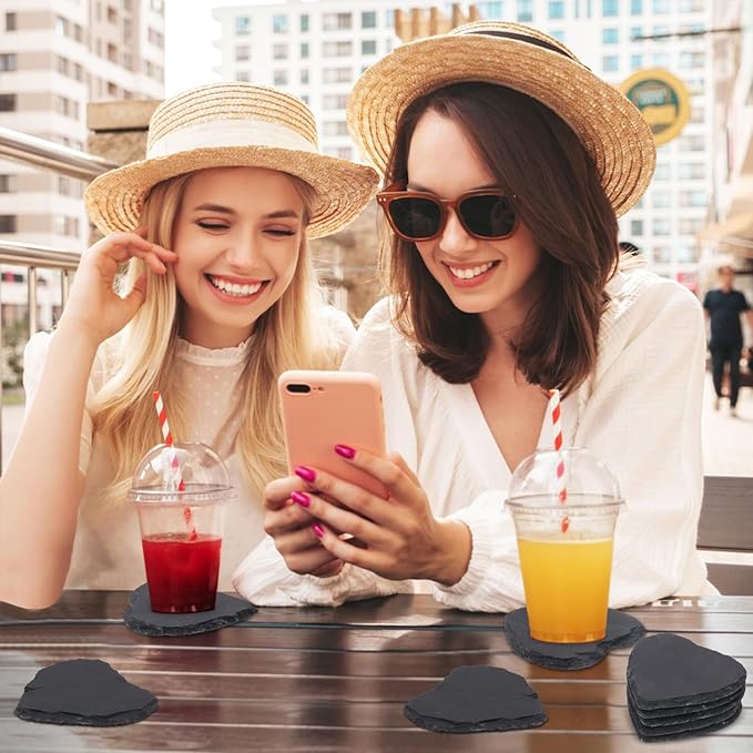 - 【Ideal Gift Option】 These slate coasters make a perfect gift for various occasions. Their strength and stylish design make them fit any color of tables. They're perfect for housewarmings, Valentine's Day gifts, or just a thoughtful gift for a friend or family member.