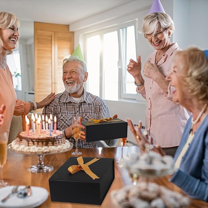 - 🎁【Widely Applicable】: This black gift box with ribbon can create a romantic ambiance and good texture is suitable for wrapping Christmas, Baby Showers, Weddings Day, Bridesmaid Gift,School Season,Father's day,Valentine's Day,New Year,Best Man's Day, Easter, Mother's Day, Birthday, Anniversary, Graduation, Housewarming, and other special gifts.
