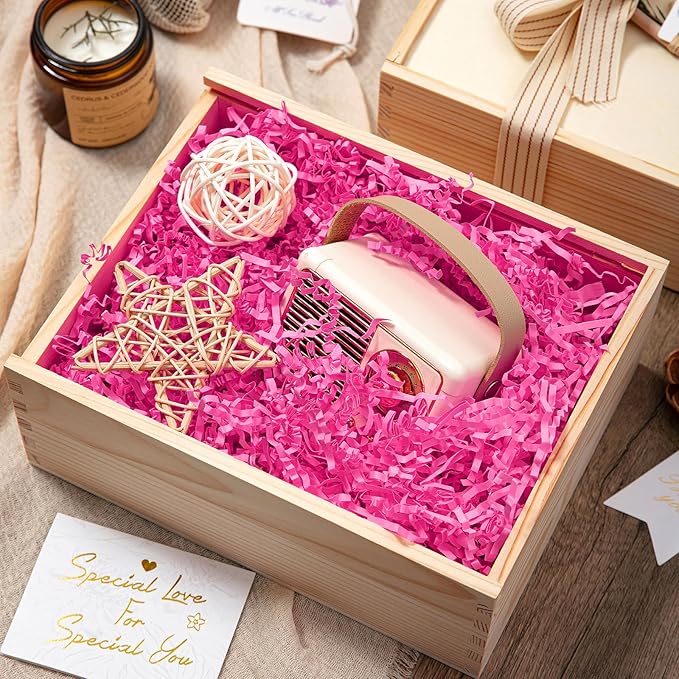 - Crinkle Cut Paper Shred Filler: Pack of 2 LB, pink color. Made of 54 lb (80 gsm) paper, recycled and eco friendly.