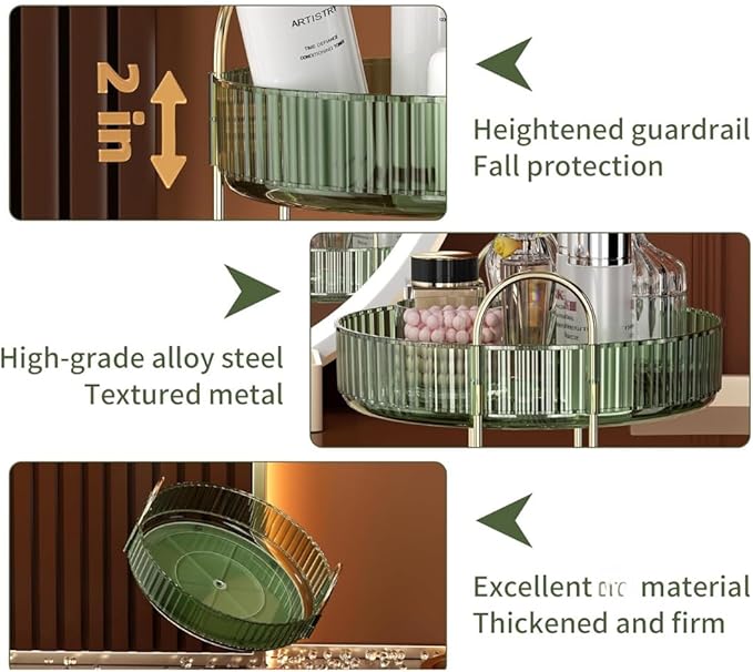 - Multi-Functional & Space-Saving: This rotating organizer is ideal for vanity tables, bathroom countertops, and dressers. It keeps all your beauty and skincare products neatly arranged, helping you maximize counter space while maintaining an elegant and organized look.