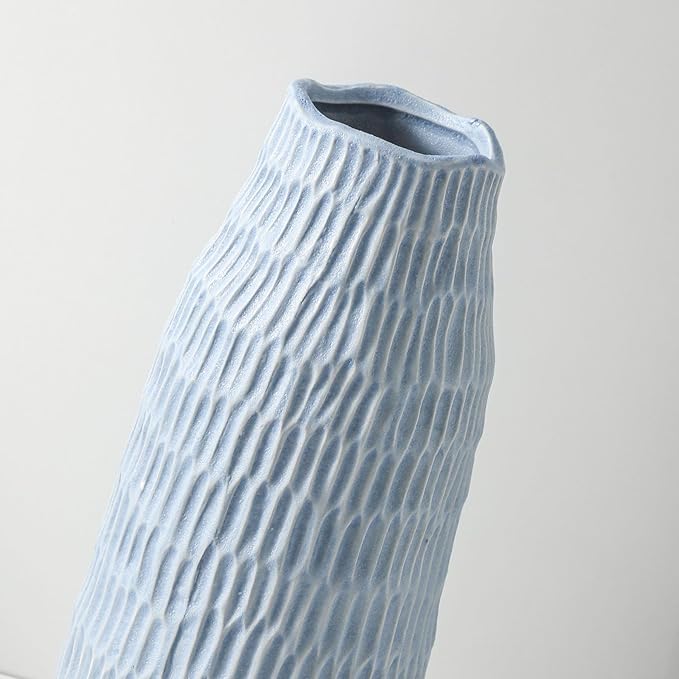12.6 Inch Mat Blue Modern Handmade Ceramic Vase, Rustic Farmhouse Decorative Flower Vases for Home Decor,Pampas Grass Bouquet, Living Room,Kitchen,Office,Bedroom,Centerpiece Table Decorations