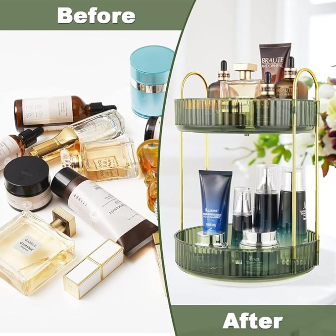 - Multi-Functional & Space-Saving: This rotating organizer is ideal for vanity tables, bathroom countertops, and dressers. It keeps all your beauty and skincare products neatly arranged, helping you maximize counter space while maintaining an elegant and organized look.
