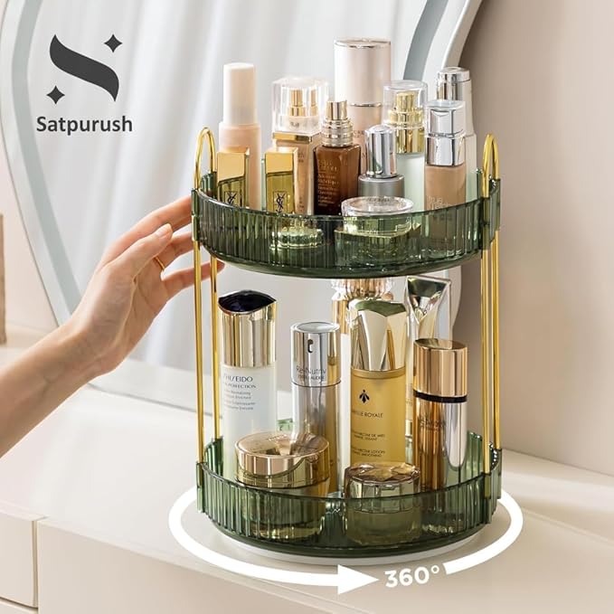 - Smooth Rotation for Easy Access: The Satpurush Makeup Organizer features a full 360-degree rotating design, allowing you to effortlessly access your beauty essentials from any angle. Simply spin the organizer to find your favorite lipstick, perfume, or skincare product without any hassle.