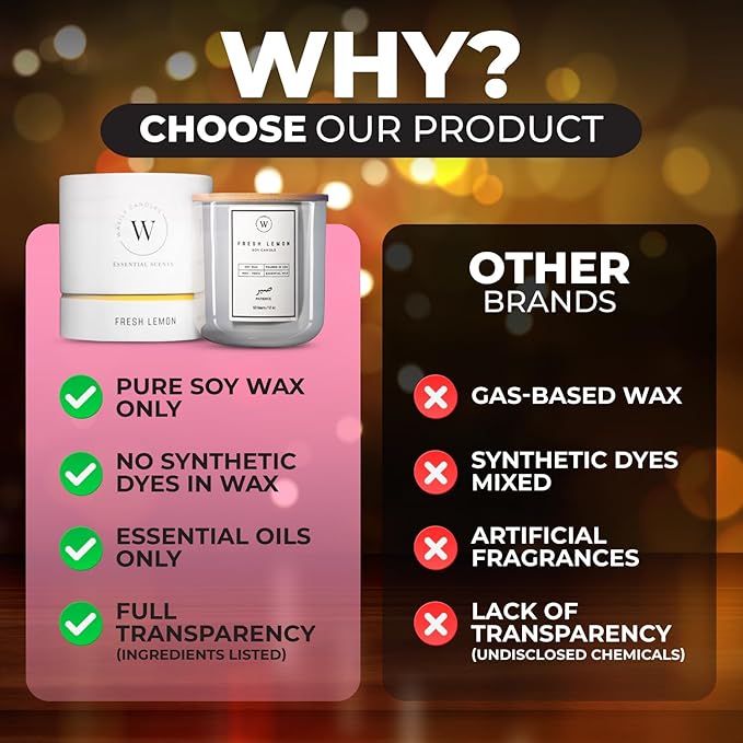 - πΏ Simpler Ingredients. Safer Burn. Better Candle. Most candles use hidden blends and synthetic fragrance oils. We donβt. Waxily Candles are made with just soy wax and essential oils β nothing more. Youβll feel the difference from the first burn.