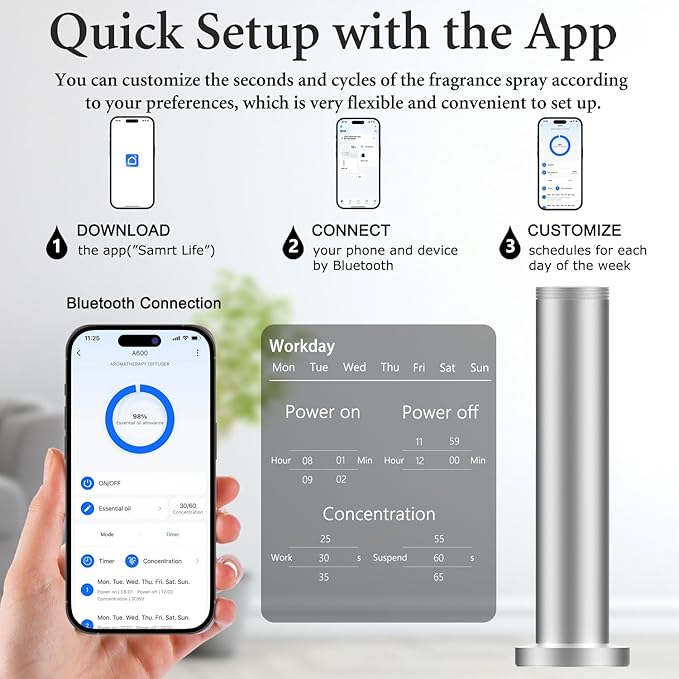 - 【Smart Control via Buttons & Bluetooth】- Enjoy effortless control with intuitive buttons on the device and the "Smart Life" mobile app (iOS/Android). The app allows you to remotely adjust settings, create schedules, and monitor usage via Bluetooth, providing a seamless and convenient user experience.