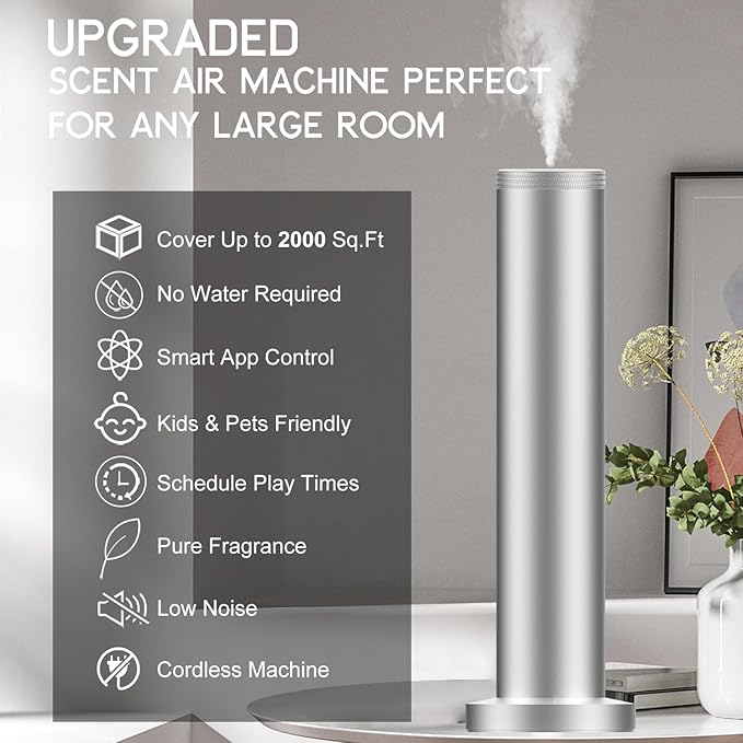 - 【Latest Nano Cold Air Spray Technology】- Equipped with cutting-edge cold-air diffusion technology, it ensures even fragrance distribution throughout any space. Its innovative airflow system creates a refreshing and inviting atmosphere, making it ideal for small to medium rooms. This technology surpasses traditional diffusers in both efficiency and coverage.