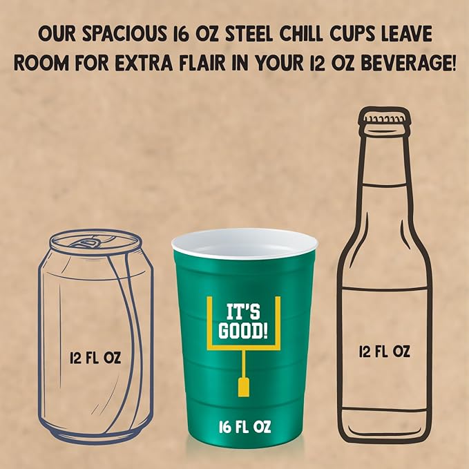 16 oz. Party Cup Football 'It's Good' Goal Post Design for Cold Drinks, Durable, Disposable, Recyclable, Made in USA, Green 12 Count