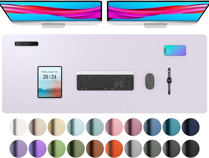 Aothia Large PU Leather Desk Pad Protector – Non-Slip Mouse Pad & Writing Mat for Office/Home, Waterproof, Easy to Clean (48" x 17", Soft Lavender)