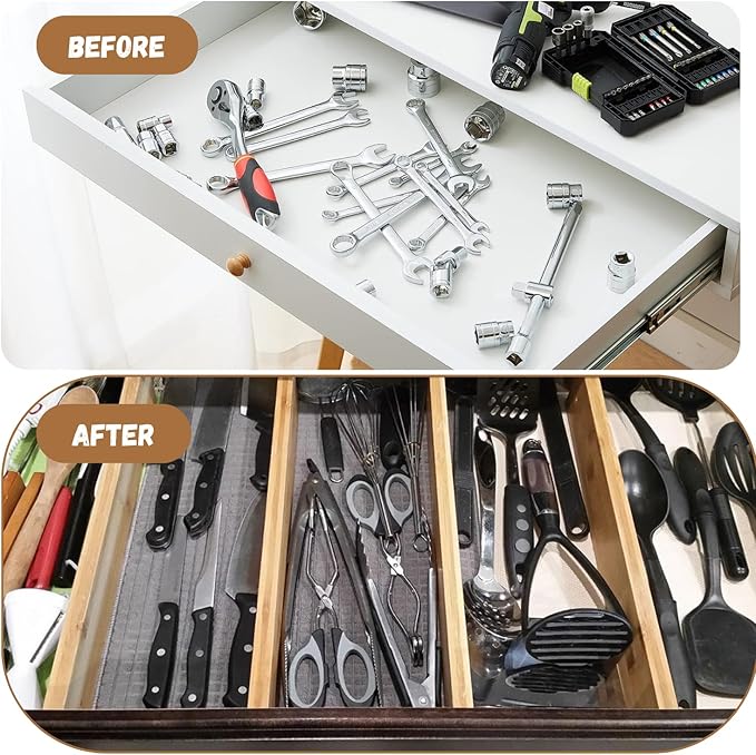 - ๐ฃ๐ฒ๐ฟ๐ณ๐ฒ๐ฐ๐ ๐ณ๐ผ๐ฟ ๐๐ถ๐๐ฐ๐ต๐ฒ๐ป & ๐๐ฒ๐ฒ๐ฝ ๐๐ฟ๐ฎ๐๐ฒ๐ฟ๐:These adjustable drawer organizers are ideal for kitchen drawer dividers and deep drawer organizers. Designed for drawers sized between 15" to 20.6", they help keep your space neat, tidy, and functional with effortless organization.