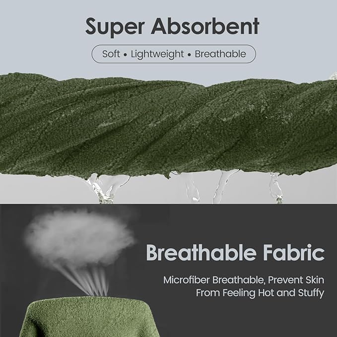 JML Microfiber Bath Towels, Oversized, Ultra Soft, Super Absorbent and Fast Drying, No Fading Large Bathroom Towel Set for Sport, Travel, Fitness (Coral Fleece - Olive-Green, 30 in x 60 in)