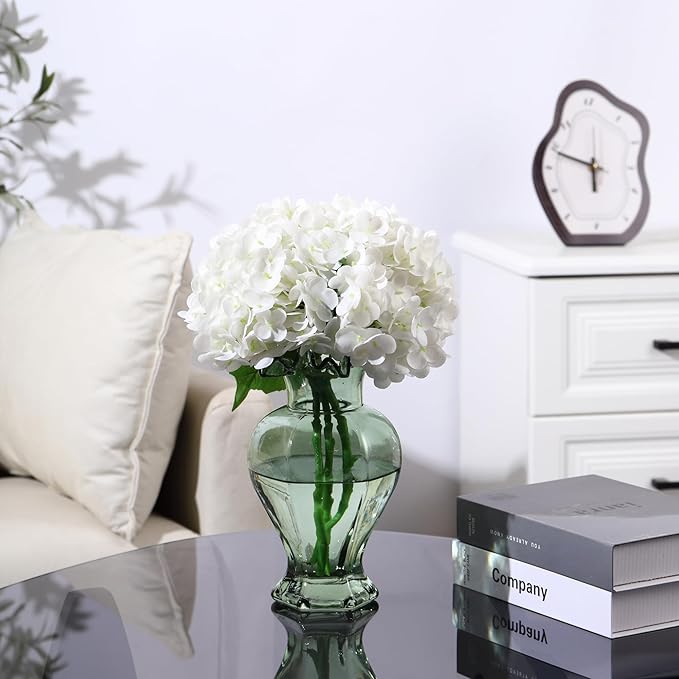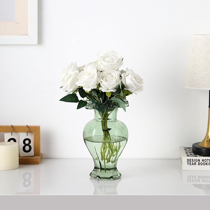 Large Glass Vase, Green Vase for Flowers, Flower Vases for Bouquet, Glass Flower Vases for Living Room, Dining Table, Shelf, Wedding, Office, Coffee Table, 9.5 Inches