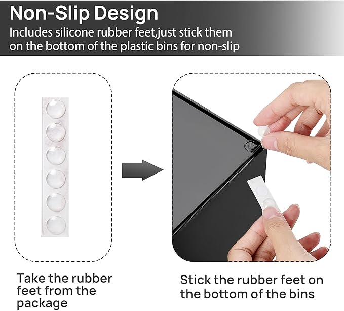- [Built-in Handle and Non-Slip] The storage containers are designed with pull-out handles, it is convenient for you to store and take out items.Extra silicone pads are included, just stick them on the bottom of the outer box for non-slip,the outer box will not move when the drawer is pulled out,providing you with easy organization and storage.